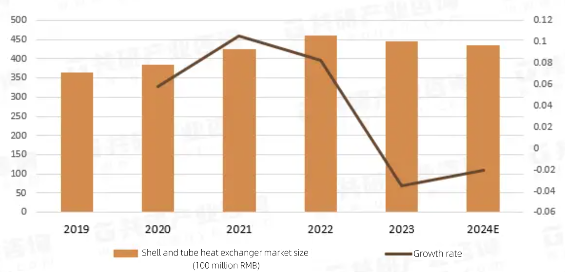 The rate and market size of Shell and tube heat exchanger in China from 2019-2024